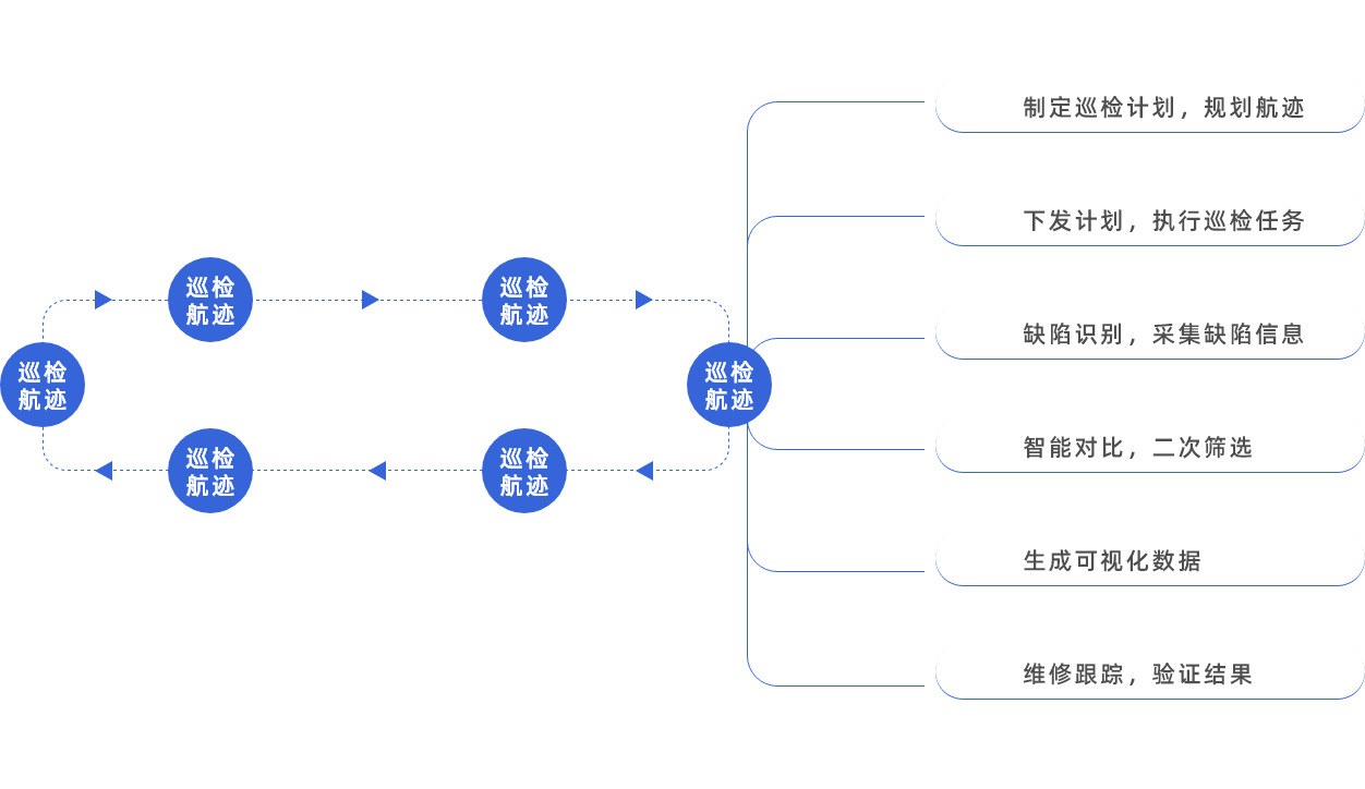 以替代人工例行巡视是开发和应用巡视系统的最终目的,无人机、智能终端、数字化平台等方式的综合运用,达到全方位立体巡检的效果。降低人员巡视工作量,提高变电运检效率,助力电站建设,实现物信融合,为电网用户“安全生产、提质增效”提供坚实的能力保障。